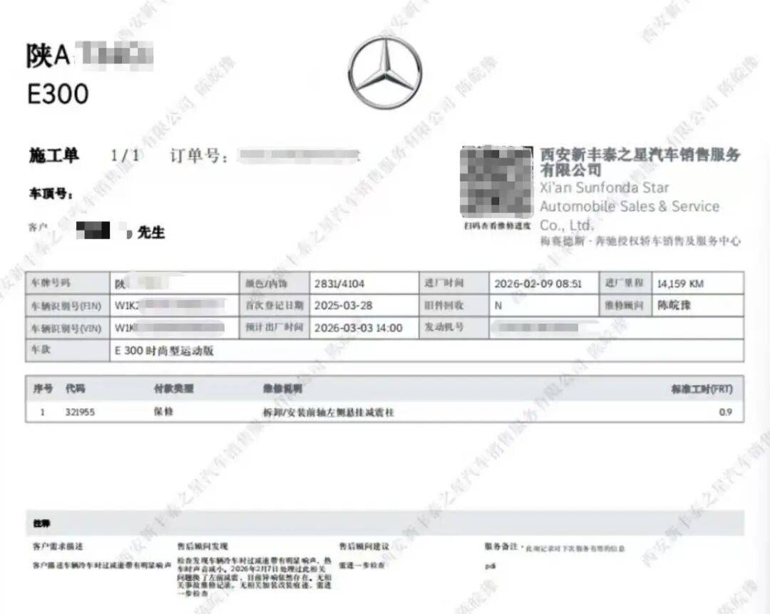 2025年3月,陕西西安的肖先生在西安新丰泰之星汽车销售服务有限公司购买了一辆全新的奔驰E300轿车,作为家庭代步车使用,花费约40万元。到了下半年,随着天气转凉,车辆却出现让他烦心的异响问题。